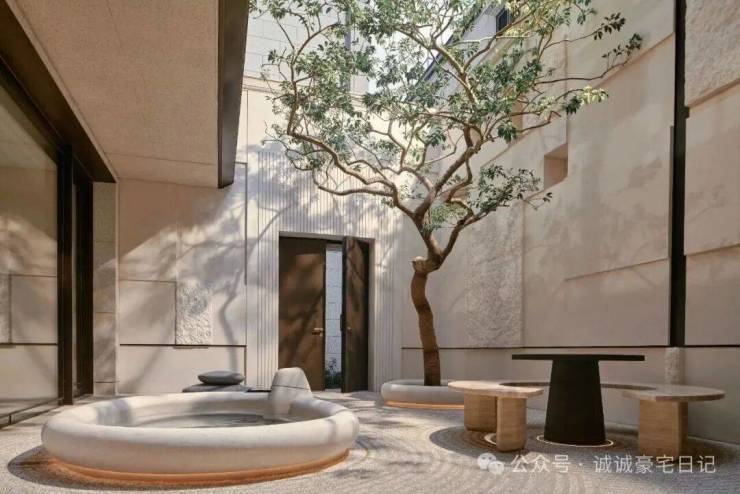 从闹市中步入狭长小径,及至打开自家院落大门,一方庭院映入眼帘,在寸土寸金的闹市中显得弥足珍贵。一汪极简主义的泉流成为点睛之笔,它如许清澈,如许淡然,也如许神秘,抚平都市喧嚣带来宁静。