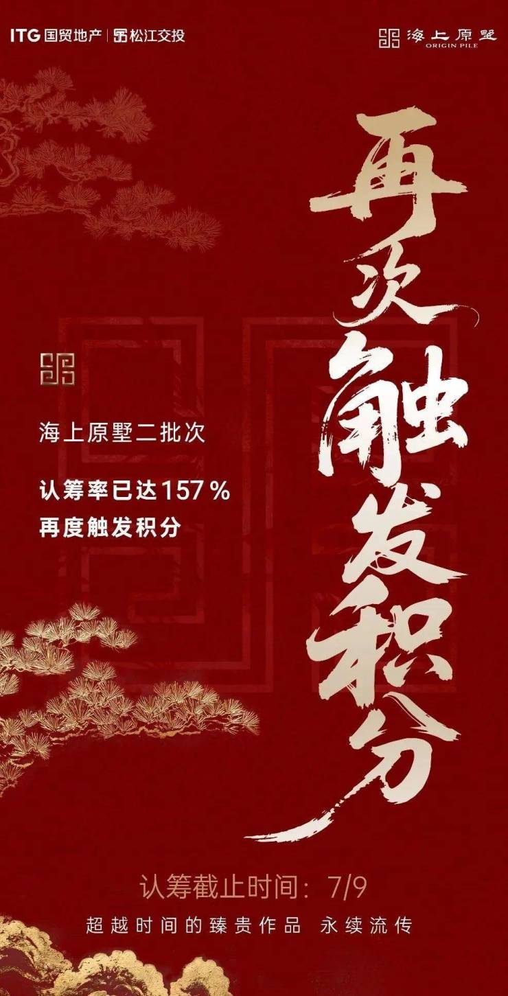 7月9日,⭐国贸海上原墅官方售楼处☎☎:400-8787-740⭐二批次认筹截止,最终以233%的认筹率,一举打破热度纪录!成为松江新城首个两次认筹均触发积分的项目。