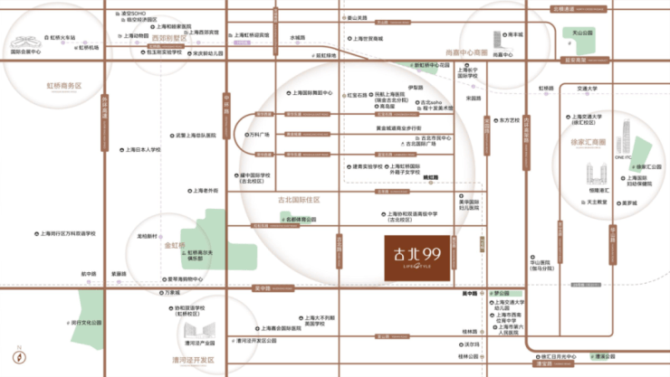 古北99地处金虹桥板块。金虹桥板块站位“金钥匙”闵行,紧靠徐汇、长宁等老牌豪宅区,北邻长宁天山板块,南接漕河泾高新技术开发区,西紧靠大虹桥。“金钥匙芯”非金虹桥莫属。