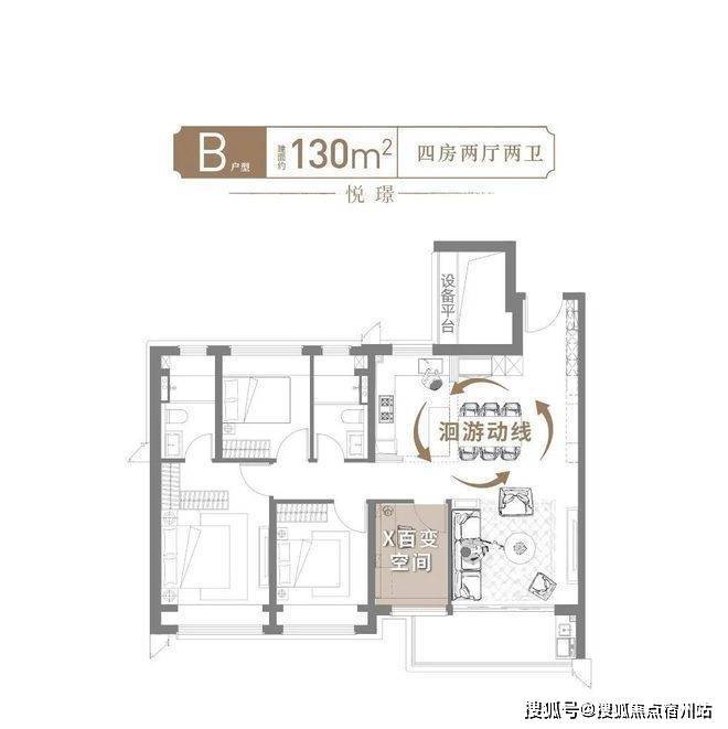 全景面宽+无界通厅+高附加值+收纳天花板,130㎡的面积直逼140㎡的尺度感!