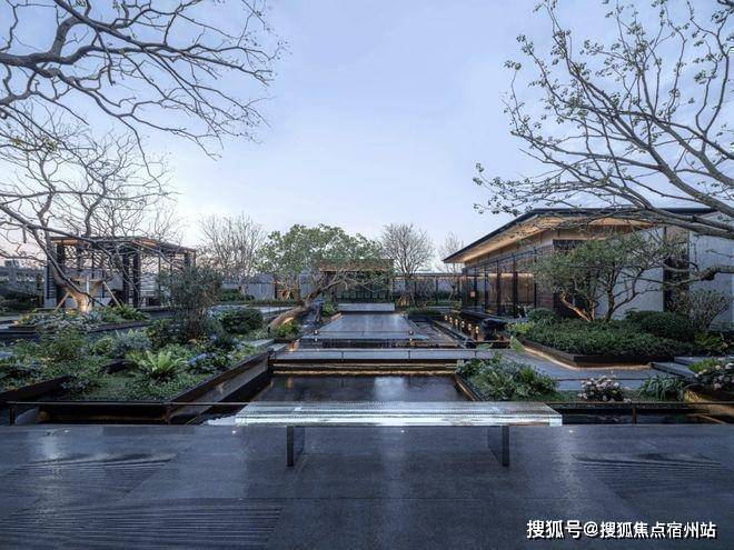 打造长约200米、近1000㎡水系景观,贯穿入口、庭院、归家轴线和景观主轴,采用五重造水形态,可行、可望、可游、可居,正是中式园林所追求的空间意境。