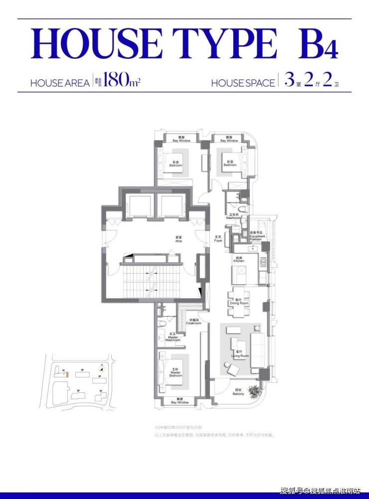 此外,客餐厅一体化、约 270° 弧形观景阳台配全卧飘窗皆为标配。、