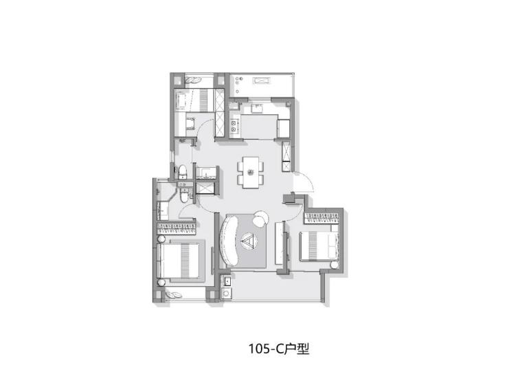 除此之外,项目还有建面约105-122㎡改善级3-3+1房,满足更进阶居住需求,非常适合有足够预算的改善型购房者。