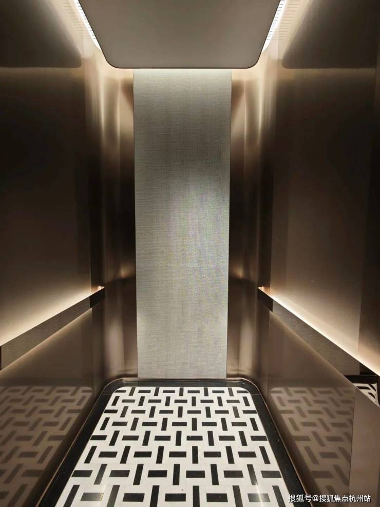 更值得一提的是,项目打造的电梯轿厢都比一般的电梯高,空间感打造上相当出彩,搭配无主灯悬浮吊顶与金属墙面设计,海派归家仪式感拉满!