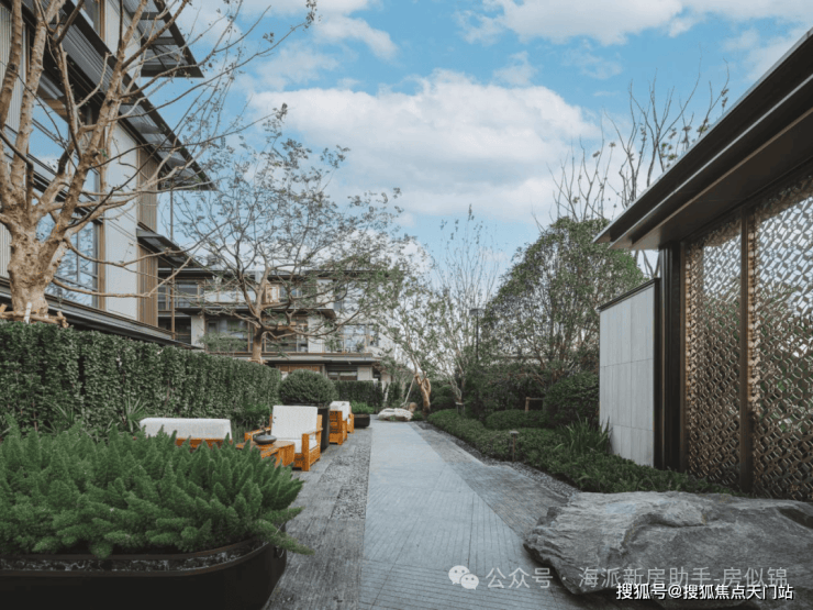 已开放的“归心森径” 更是惊艳众人——穿过宋式瓶门,百年罗汉松、珍品羽毛枫、乌桕、紫薇及造型黑松等名贵树种错落排布,以树石为笔、光影为墨,勾勒出四季流转的宋韵画境,让每一次归家都成为 “穿越千年风雅” 的身心洗礼。