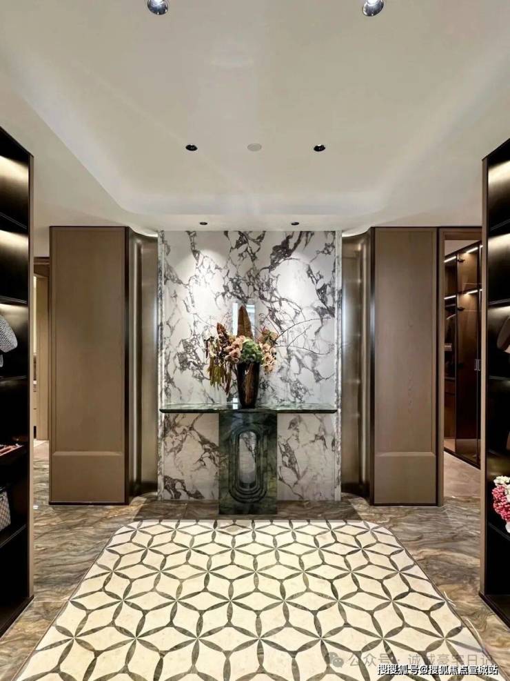 建筑风格:以 “海派工业风” 为基底,基座层采用蓝金沙岩板干挂,主体层为香槟金铝板幕墙 + 无框开敞阳台,顶部层坡屋顶挑檐植入白玉兰雕花。