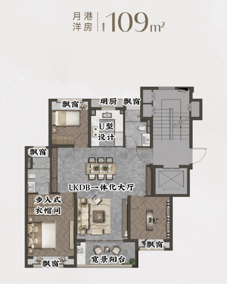 首层约6.9米大尺度横厅+U型厨房+南向多功能室+客卫,附赠大面积侧边花园;