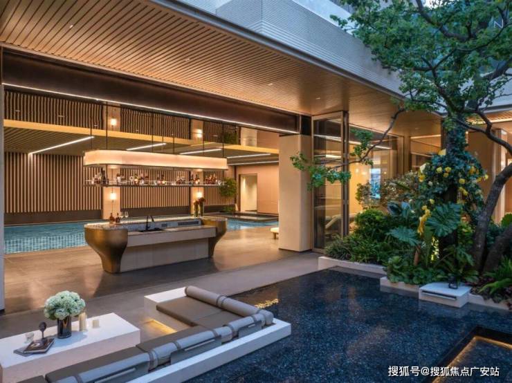 社区大堂极具仪式感,未来会采用地下会所设计,会所沿着下沉庭院四周展开,满足业主日常娱乐需求,也与其他竞品做出差异化。
