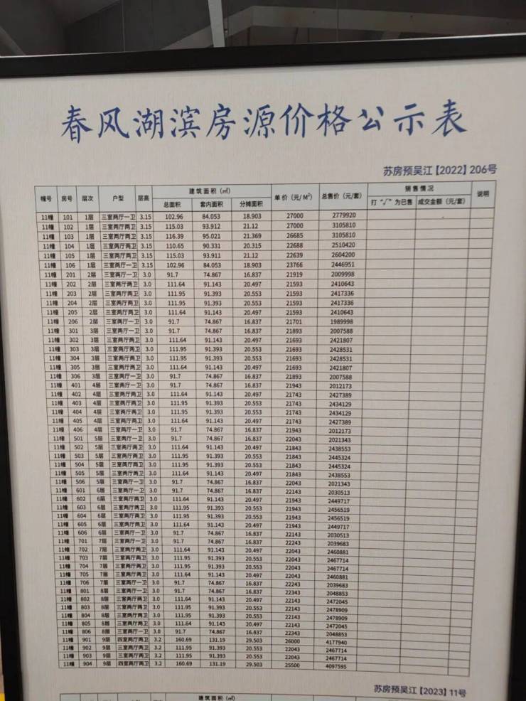 一房一价表:
