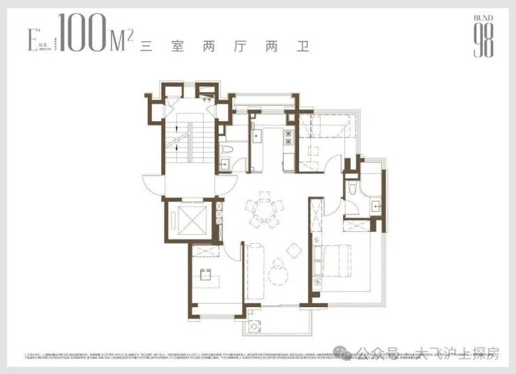 同面积段三开间户型面宽约10.5米,同面积四开间朝南户型面宽约13米,Bund98比他们更胜一筹。