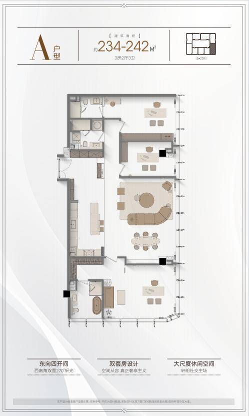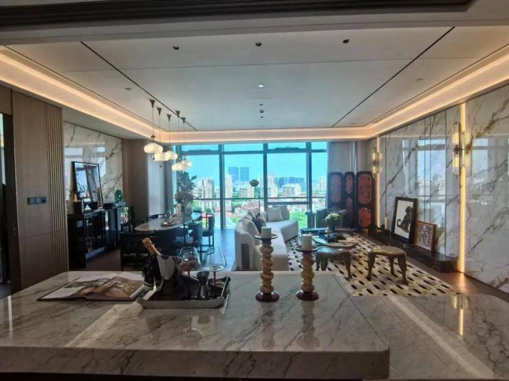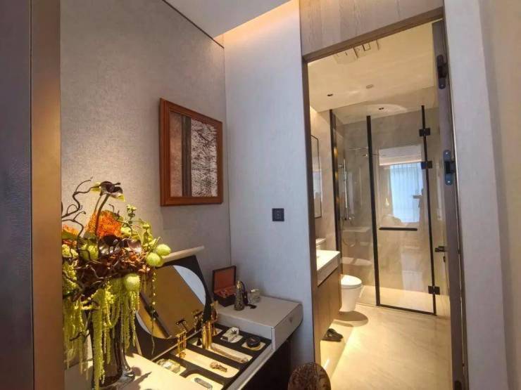 项目主力户型为220-450㎡的云端平层,采用“去走廊化”设计理念,实现平均得房率83%的行业突破。值得关注的是其创新的“三厅系统”:6.8米挑高的商务会客厅配备智能雾化玻璃,可一键切换透明/雾化模式;家庭厅采用双向环幕落地窗设计,270度俯瞰城市景观;多功能阳光厅则整合了小型会议室与茶室功能。所有单元标配德国旭格全景门窗系统,配合Low-E三银玻璃,实现紫外线阻隔率99%的同时保证自然采光。卫浴空间选用当代Dornbracht恒温系统与汉斯格雅境雨花洒,主卫更创新性植入智能魔镜系统,可实时显示水质监测数据。