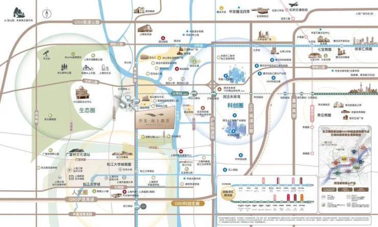 合心规划 产城样板: 【“科创+人文+生态”城市单元示范】华发海上都荟首入松江,携崭新“优+产品体系5.0”,为洞泾、乃至为松江带来目前区域内综合高品质作品。结合上海生态环境保护“十四五“规划,站位国际领先的可持续性项目规划,华发海上都荟结合自身的独特聚合优势,在传统TOD规划之上,不可复制的土地生态资源,向东链接G60科创走廊“以镇命名为区块”洞泾人工智能产业基地;向南直达亚洲大学城之一——松江大学城;北侧紧连上海陆面自然山林资源——佘山国家旅游度假区。板块将区域打造成为“科创+文教+生态”交汇的核心新城模式,划立一个崭新的城市单元示范。