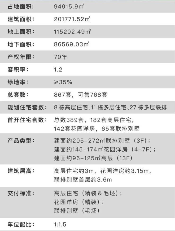 项目产品为建面约96-125m²高层住宅,建面约145-174m²花园洋房,建面约213-270m²联排别墅。