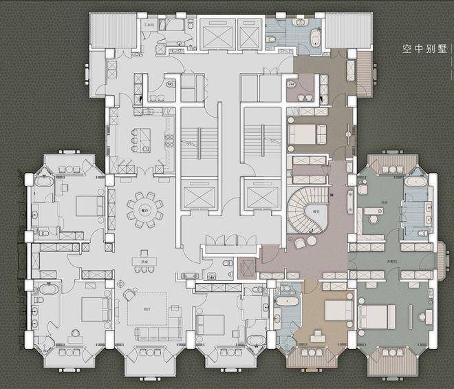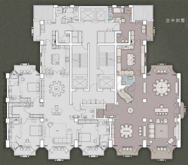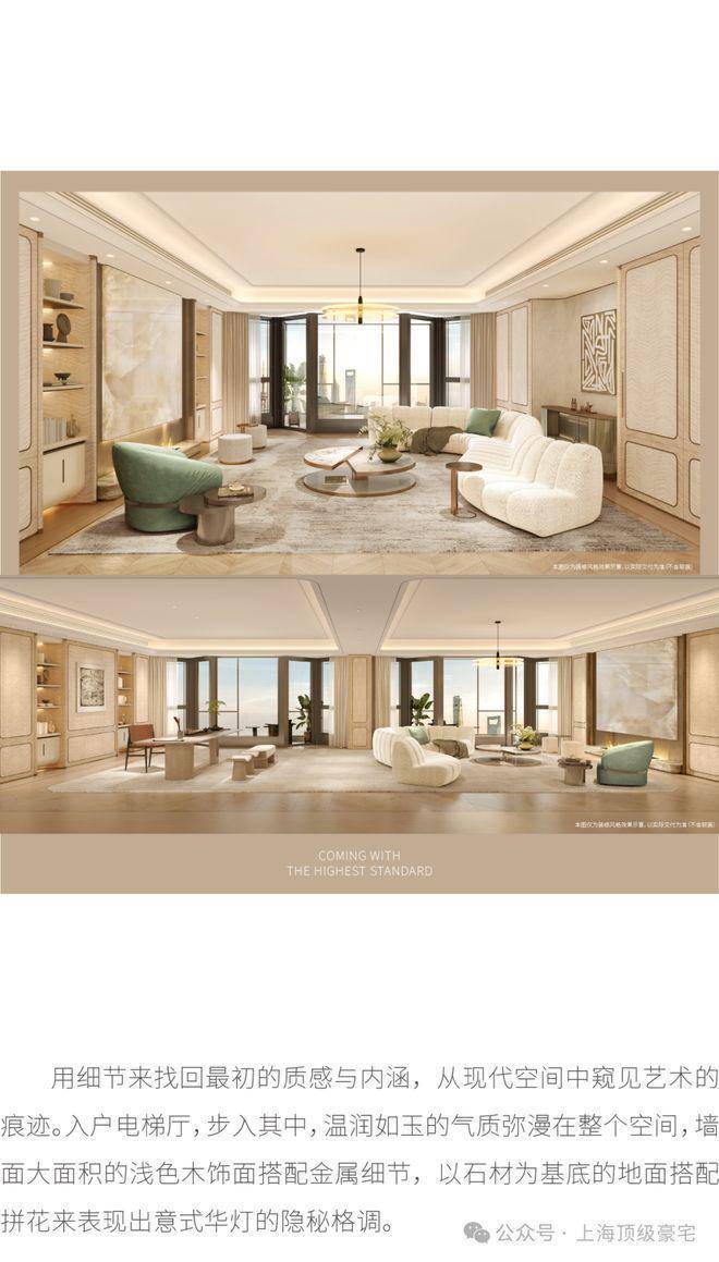 住宅部分全部大平层(复式)设计,单套面积约370-1500㎡,全部精装交付。