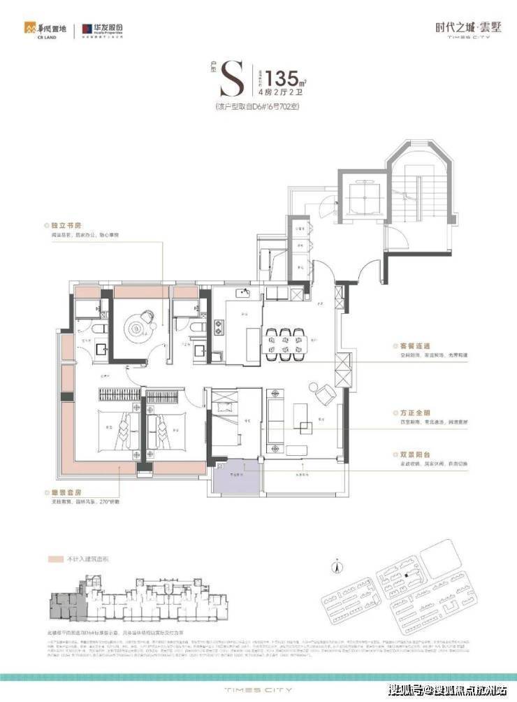 另外,4房4飘窗2阳台的设计,整个空间的尺度感、采光通透度都表现的非常出众。