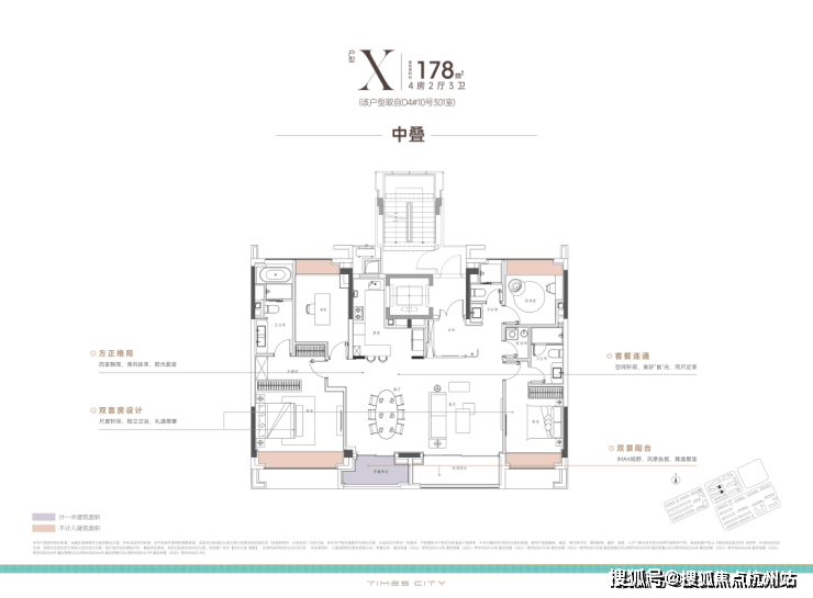 项目的中叠四开间朝南,超大IMAX的采光面,妥妥市区豪宅大平层的尺度感。