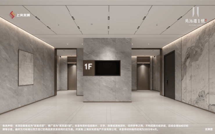另外,市场上常见单入户门厅,而吴淞道1號采用地上地下双精装入户门厅,质感岩板一体铺就。