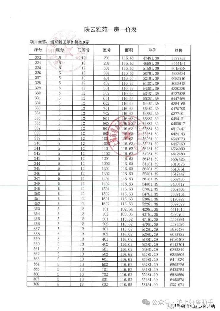 项目一房一价表▼