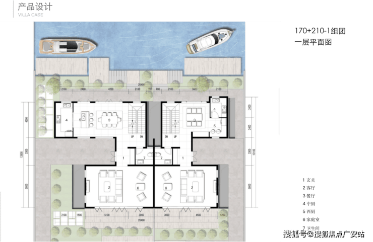 每一排别墅前都有一条渠道,引入水系,每户都带有水岸码头,用来停靠游艇,并且水系的分布确保每家都能开游艇到兰香湖中心,周末逛街shaopping,下了游艇到家再游个泳,不用出国就能享受棕榈岛同款生活。
