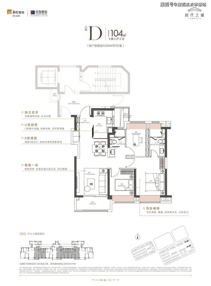 建面约104㎡3房2厅2卫,八批次总价约507-585万,经典动静分离户型,三开间朝南,独立玄关,U型厨房,预留分户S墙设计,可释放厨房冰箱空间!从最新开放的104户型样板间可以看出,项目对新品户型的收纳储藏空间做了全维升级,实用性更强。建面约124㎡3房2厅2卫,八批次总价约596-693万,同样是经典的动静分离户型,属于改善型3房,各空间居住舒适度更强,该户型均为边套,主卧为270°转角飘窗;