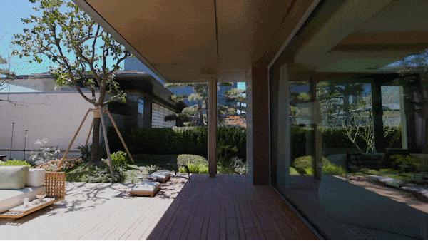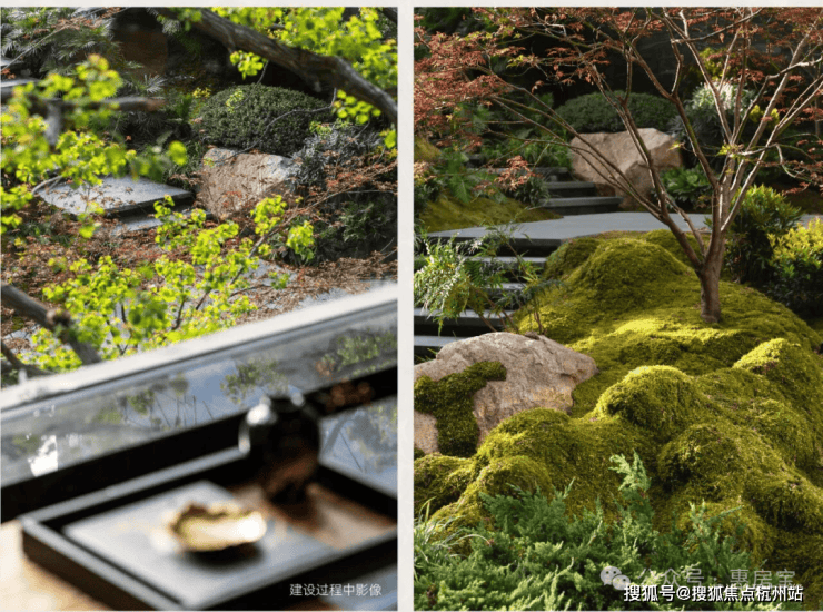 而最令人惊艳的,当属约6米地势差打造的下沉式山水庭院,山、石、水、林有序交织,犹如一幅“豁然开朗山水轴卷,每一步皆是景致,每一处皆有不同。