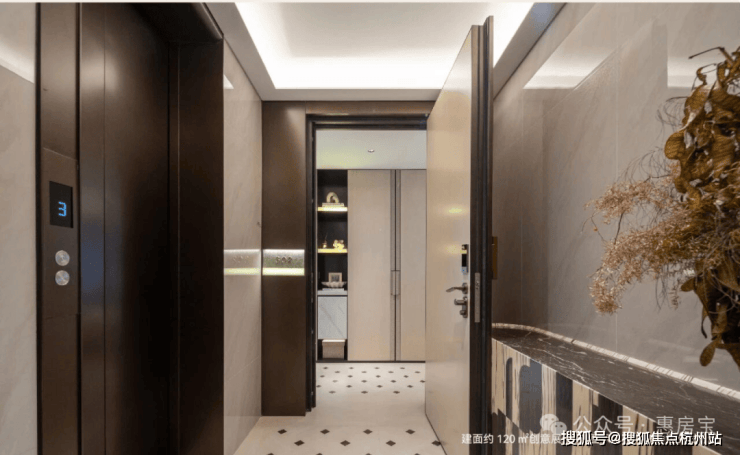 从入户开始就拉满仪式感,类梯入户设计,搭配专属电梯厅,进门即享私密过渡空间,避免了传统户型“电梯厅共用”的尴尬。