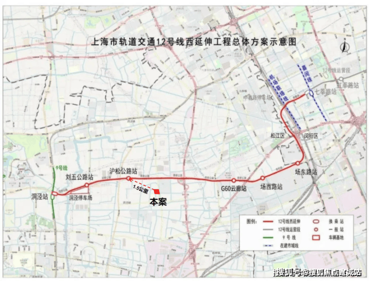 距离12号线西延伸(规划建设中)沪松公路站直线约1.5公里
