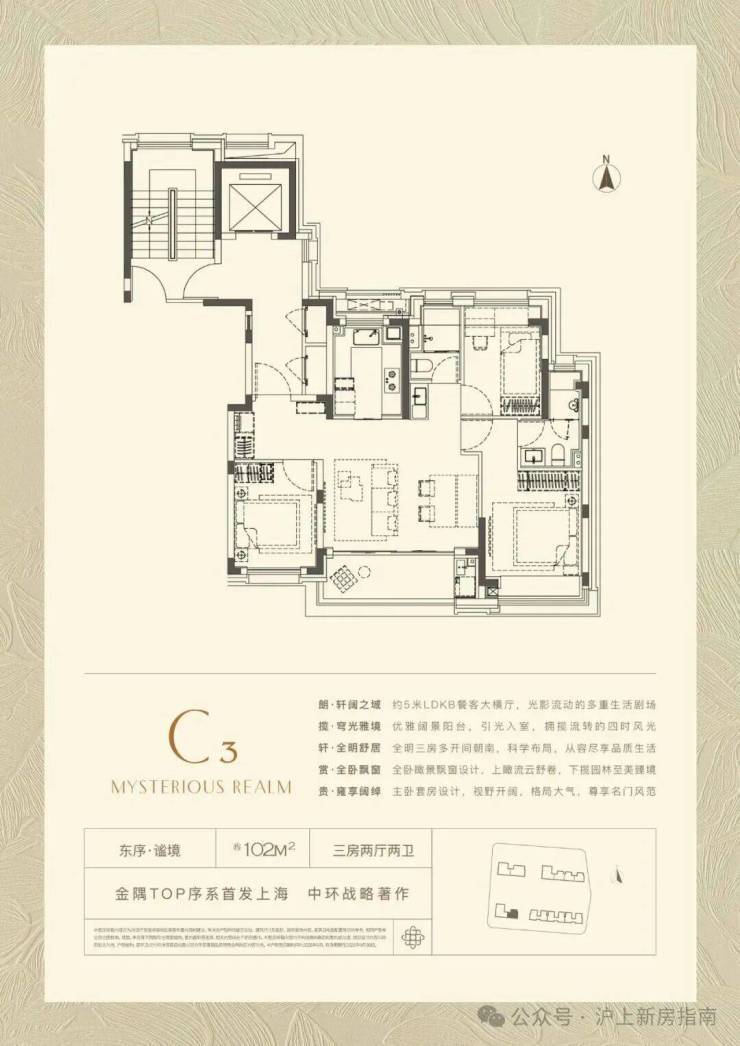 黄金战略区位:金隅·公园东序位于整体规划约437万的桃浦科创城,是上海中环旁四大科创板块之一,也是上海"十四五"重点规划的科创承载区。远超前滩CBD的体量和能级,其中约113万方智创TOP产城综合体,目前已汇聚东方雨虹、德爱威(中国)华东总部、李园实业、乐凯新材料等超200+高新技术企业落地,各类知识产权近1000项,启程全球科技创新中心的新一极,意味着您将置身于城市发展的潮头。稀缺景观:金隅·公园东序最大的亮点是直面约百万方的桃浦中央公园。特别是184㎡的‘全景舱’户型,设计了270度的环幕窗景,相当于每天醒来,整个中央公园都成了您家的私人背景墙。"这种资源在寸土寸金的中环区域是绝无仅有的。