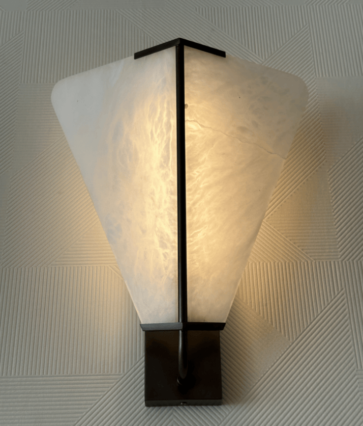 壁灯的质感,就如同摆放的西班牙云石一样,拥有粗粝的质感,又拥有几何形状的深邃,张力非凡。