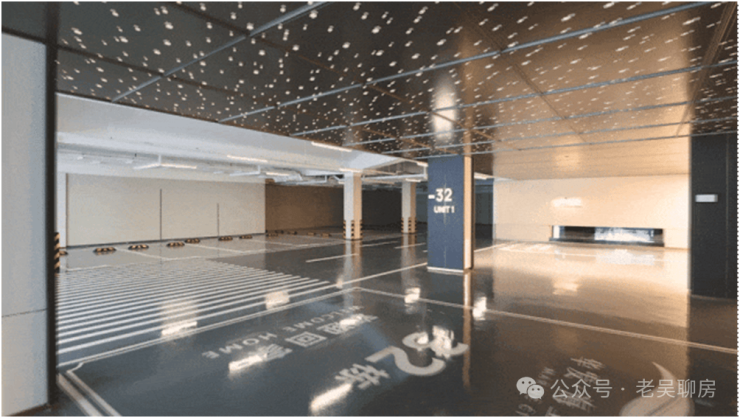 地下车库是当下市场流行的星空顶设计,兼具美观度和实用性,入眼即为满天星铝板,抬头就是“星辰”闪烁,氛围感十足。