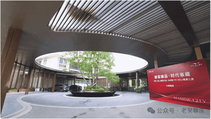 华发·海上都荟的主入口做了环岛式酒店大堂设计,风雨回廊在天气炎热或者下雨天时让人更舒适,融合了酒店的精致感、艺术感,给人仪式感的入户体验。