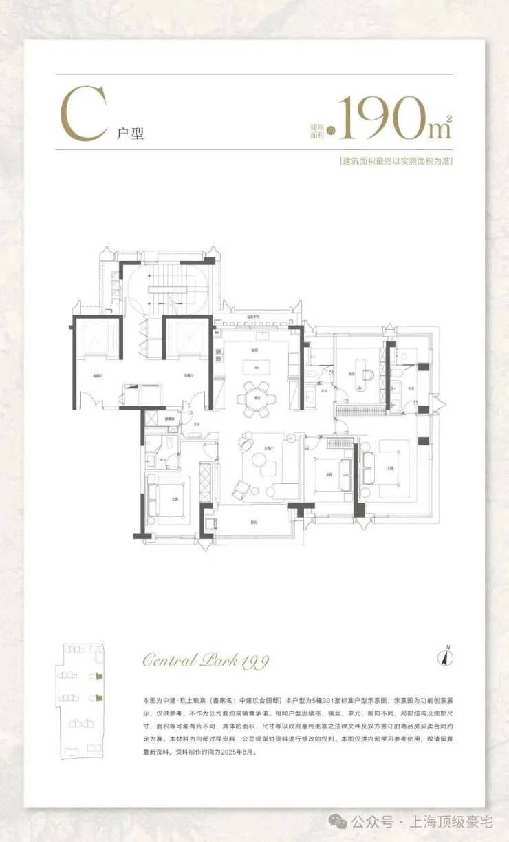 190平方米户型为低密类洋房产品,仅22套,强调静谧与舒适,营造出贴近自然的低密度生活氛围;
