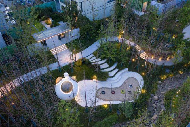 整个小区分成了三个不同的区域:合院区、一期叠墅洋房区和二期叠墅区,三个组团之间分区管理,互不干涉,同时采用人性化动线设计,人车分离,让居住更安全。