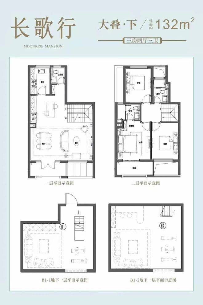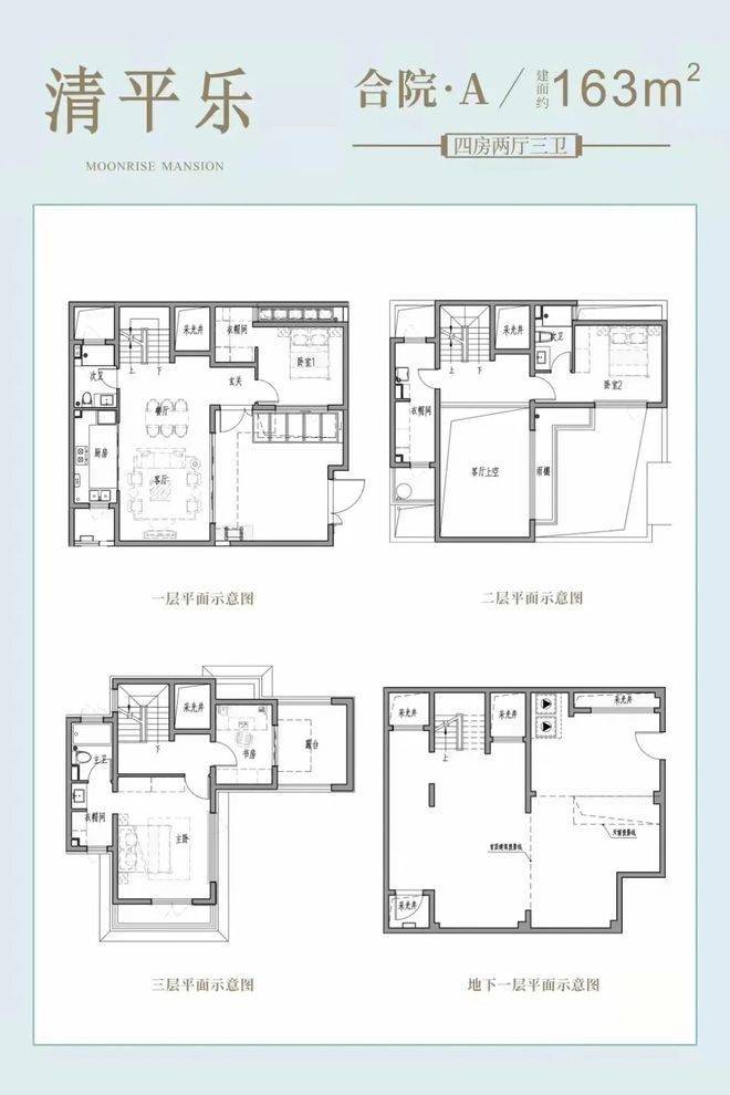 合院(毛坯):附带40-100㎡花园&地下室(层高5.3m),三楼有近15㎡露台。