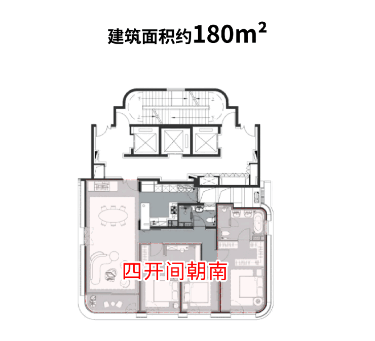 建面约180㎡的3房,是纯粹的改善型产品,是从“够用”到“奢侈”的质变。