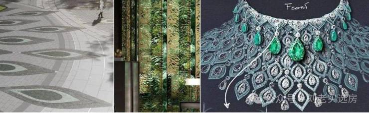在其他项目还在热衷“奢石”概念的时候,项目园林设计已经引入了更高阶的宝石元素。景观中的地面铺装以模仿绿宝石切割的技术形态,创造出引导居民穿过闪闪发光的广阔空间的路径。