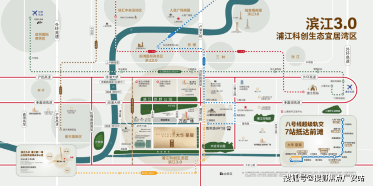 项目距离8号线延长线汇臻路站直线约1.4公里,同时近享BRT快速公交,7站抵达前滩东方体育中心,全线与14条轨交线换乘,通达全上海。