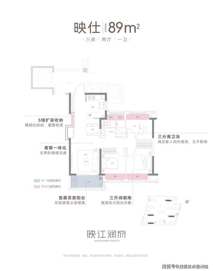 建面约103㎡3房2卫中间套:远超同价位竞品的设计水准,魔鬼细节把控!☑️☑️华润映江润府售楼处电话:400-8855-420☑️☑️