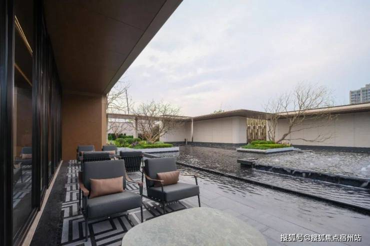 · 四重隐境水院:风雅会客厅出来经过风雨连廊区连接的就是项目售楼处,经过风雨连廊区的时候会看到项目打造的约650平米纯净自然的水域界面,楼台与水瀑交融,享受回家的仪式感。通透的艺术廊道,彰显了以人为本的设计理念,既能遮风挡雨,也可以从容漫步,整个无界水院采用了水系堆叠,层层变换,错落有致,美不胜收!