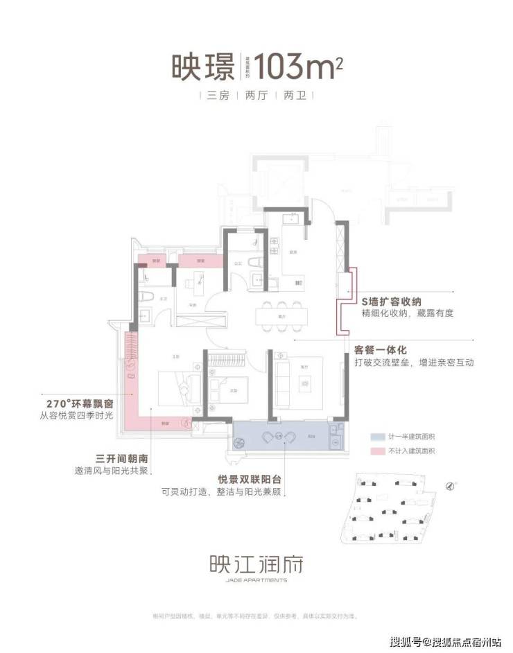 ②建面约103㎡3房2卫边套:品质改善的爆款户型,270°环幕飘窗!☑️☑️华润映江润府售楼处电话:400-8855-420☑️☑️