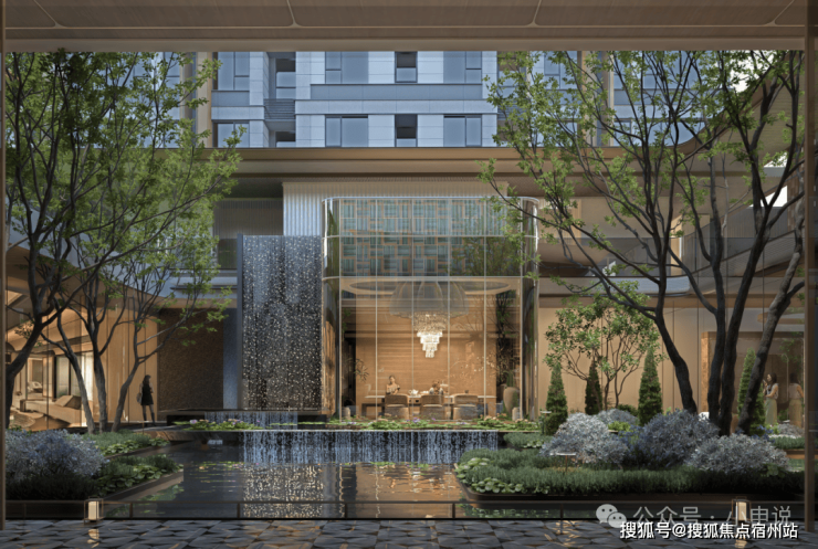 比如,上海不缺高楼大厦,缺的是能调节快节奏,调节996的慢生活。于是你可以看到,结合建筑界面打造城市精品酒店式的入口广场,即精品街区,以及流觞曲水的觅隐叠溪,将你从城市拉回自然。回家就像进一家隐奢酒店一样,立马就能卸下一天疲惫。