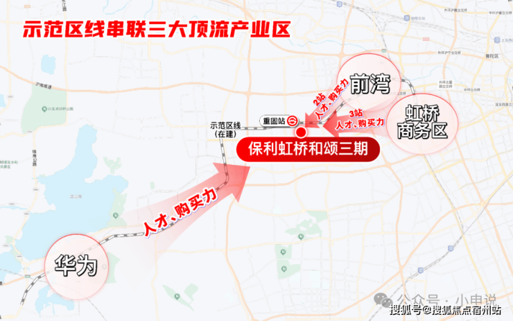 由此可见, 示范区线沿线连接着华为、前湾、大虹桥、临空、中山公园、市中心、张江、华泾等一众超强产业区。保利虹桥和颂·西岸凭借地铁房的优势及价格红利,必将成为这些产业区人才置业的热门之选。