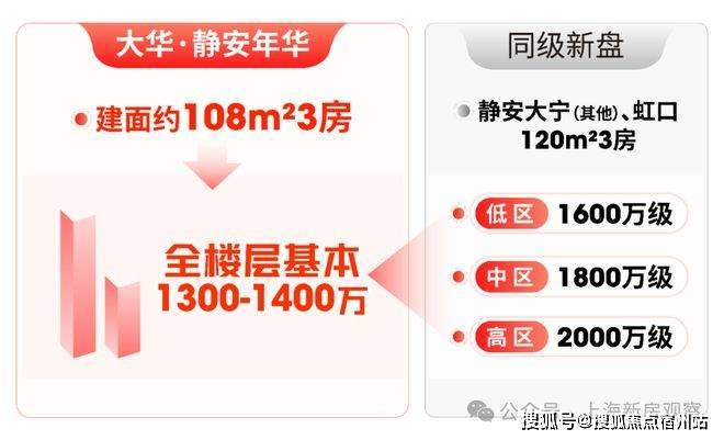 放眼整个静安区,曹家渡17万/㎡,东斯文里和苏河湾项目预计冲击20万/㎡,和大华·静安年华高层差价预计近7万/㎡。旁边虹口新房售价也已达14.78-16.6万/㎡。