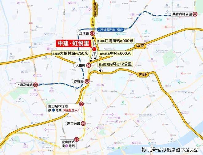 中建虹悦里售楼处电话400-8855-420✨✨轨交配套:中建·虹悦里直线距离3号线大柏树站约750米,直线距离江湾镇站均约900米,步行可及。3号线也是多年才出一个轨交房。畅联中山公园/延安西路;三重高架:临近中环高架/逸仙高架及大柏树立交,迅捷衔接五角场/大宁等地;干道交通:周边汇聚逸仙路/汶水路/中山北路等城市主干道,便捷抵达全城。中建虹悦里售楼处电话400-8855-420✨✨