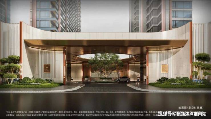 在选材上,项目采用米色石材、铝板和金属镶框进行多元混搭,重点刻画单元入口、入户大堂等细节,质感非常丰富。尤其艺术感的弧形镜面立面,与门前蜿蜒的水岸风光相呼应,让建筑仿佛拥有了呼吸感和浪漫的情绪。