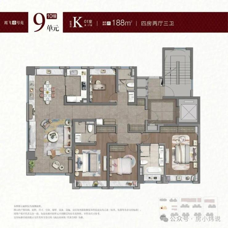 • 户型价格:主力户型为建面约98-122㎡三房、141-188㎡四房,总价742万起,均价约8.55万元/㎡,精装修交付,该项目主力户型兼顾刚需改善与高净值家庭需求,精装标准达5000元/㎡以上。