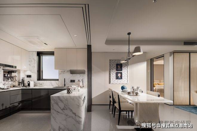 宽境阳台、客餐一体,全域贯通配合香奈儿高奢风,呈现超大尺度家庭公共空间;