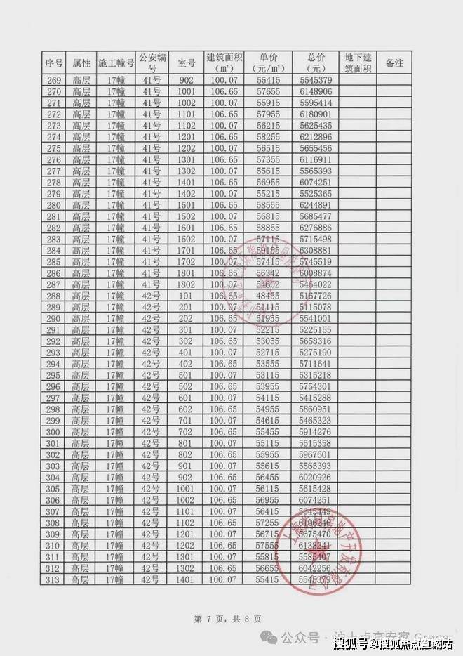 一房一价表参考: