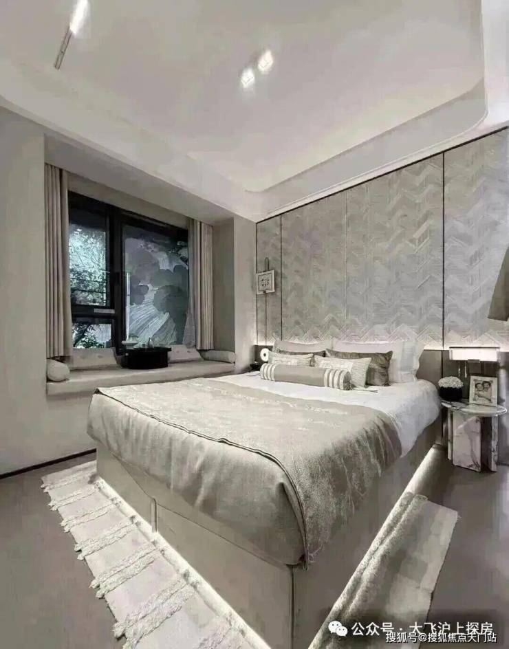 尤其是主卧大套房安排上独立衣帽间+独卫,配上270度的转角飘窗,一扇窗就是一幅流动的四季自然画。