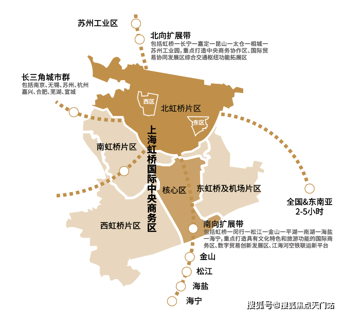 上虹桥依托东西两个片区(西居东产,共计约167公顷),遵循“以人为本、产城融合、多元包容、活力共享”的理念,整体打造创新经济集聚区、中央商务配套区和高品质国际化社区。
